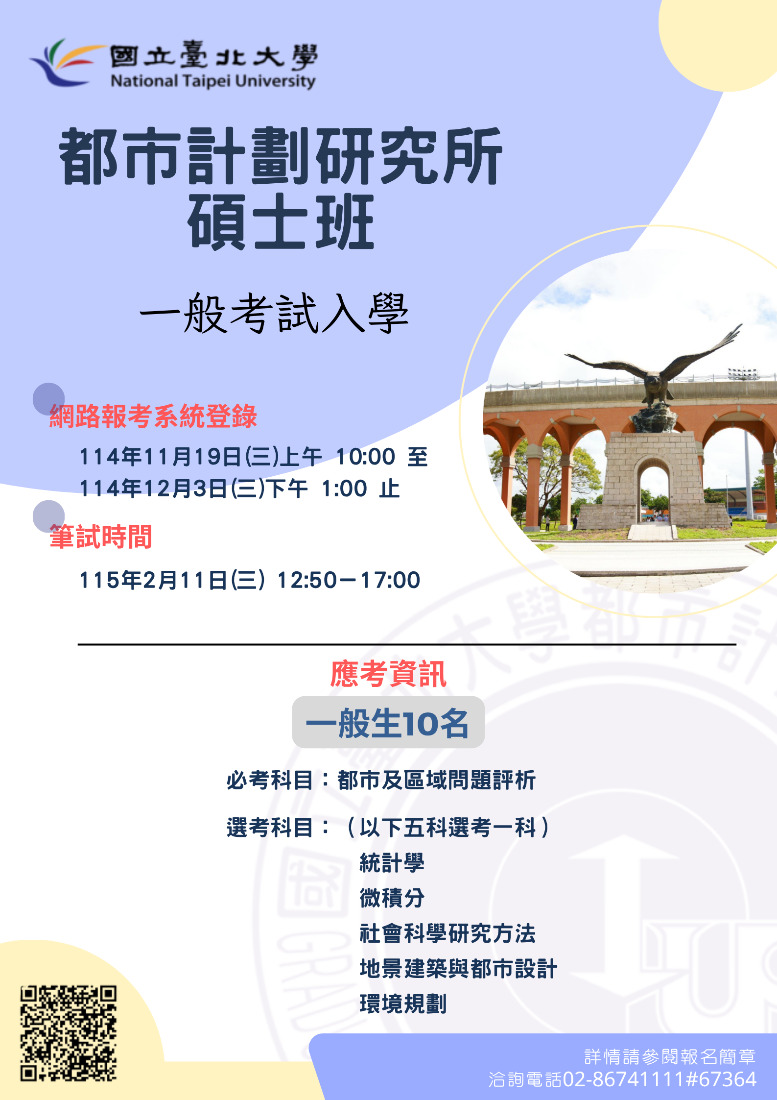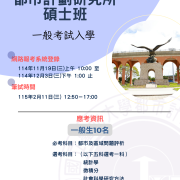 國立臺北大學都市計劃研究所115學年度碩士班一般入學開放報名囉!!!